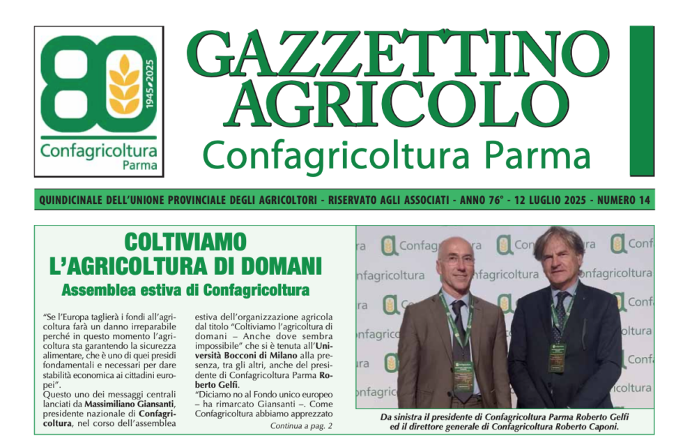 Pubblicato il numero 14/2025 del Gazzettino Agricolo, il quindicinale di Confagricoltura Parma con le principali
