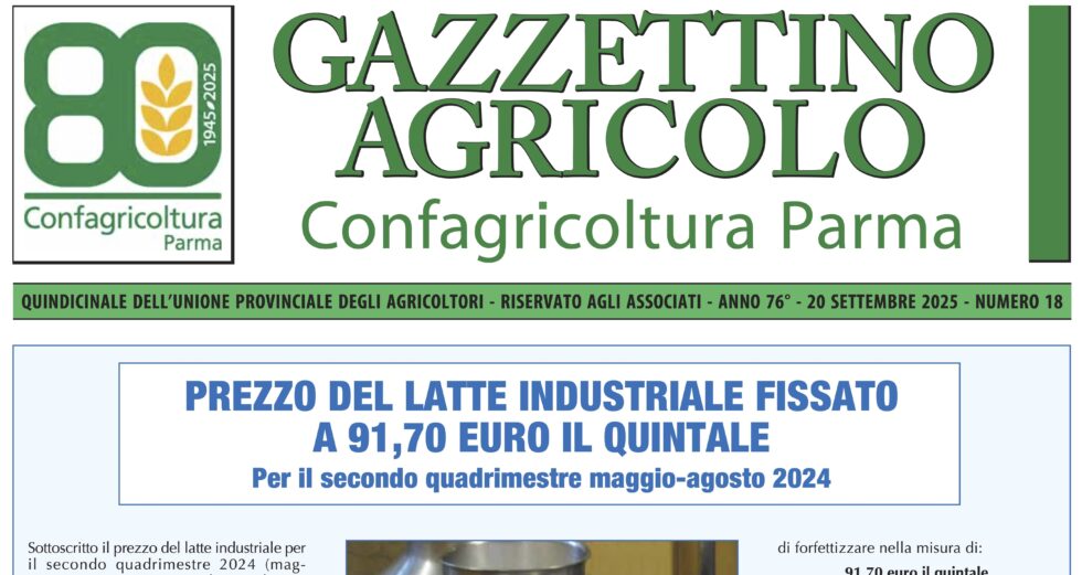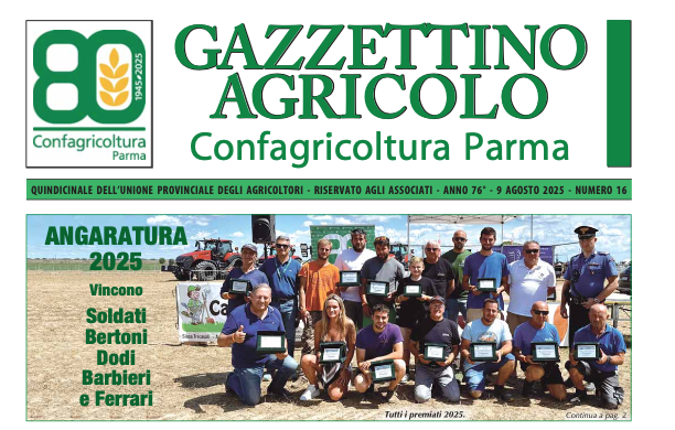 Pubblicato il numero 16/2025 del Gazzettino Agricolo, il quindicinale di Confagricoltura Parma con le principali
