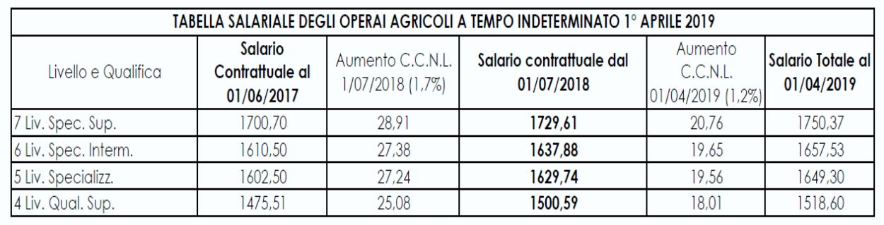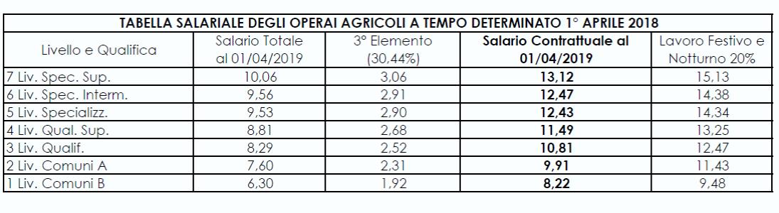A seguito dell’articolo pubblicato sul n° 13 del Bologna Agricola Informa del 15 luglio u.s., si riportano le Tabelle salariali in vigore dal 1° Aprile 2019.
