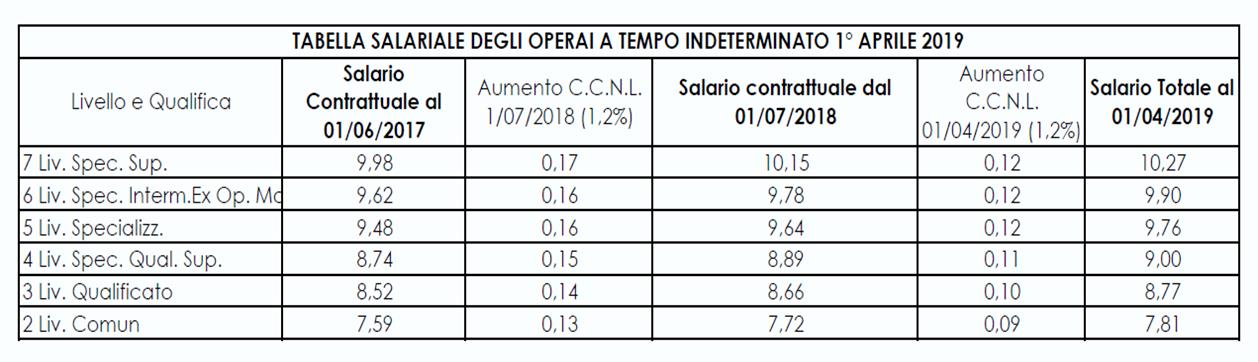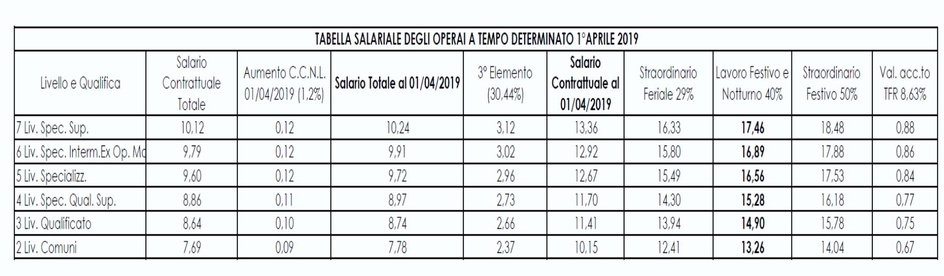 Tabelle salariali in vigore dal 1° Aprile 2019.