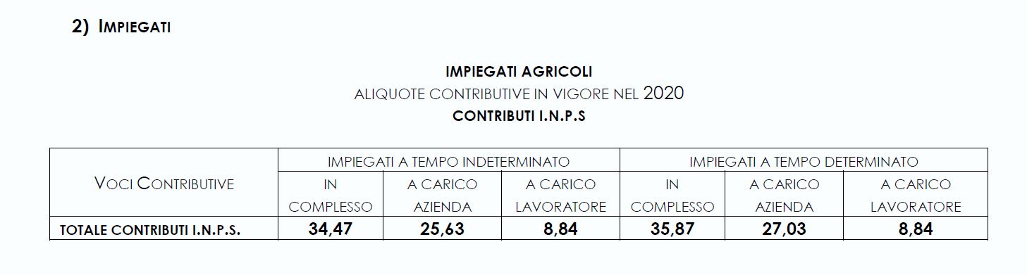 Pubblichiamo, come ogni anno, le tabelle relative alle aliquote contributive I.N.P.S. in vigore nel settore agricolo, per l’anno 2020, per i lavoratori dipendenti e per i collaboratori coordinati e continuativi (ed assimilati), di aziende agricole.