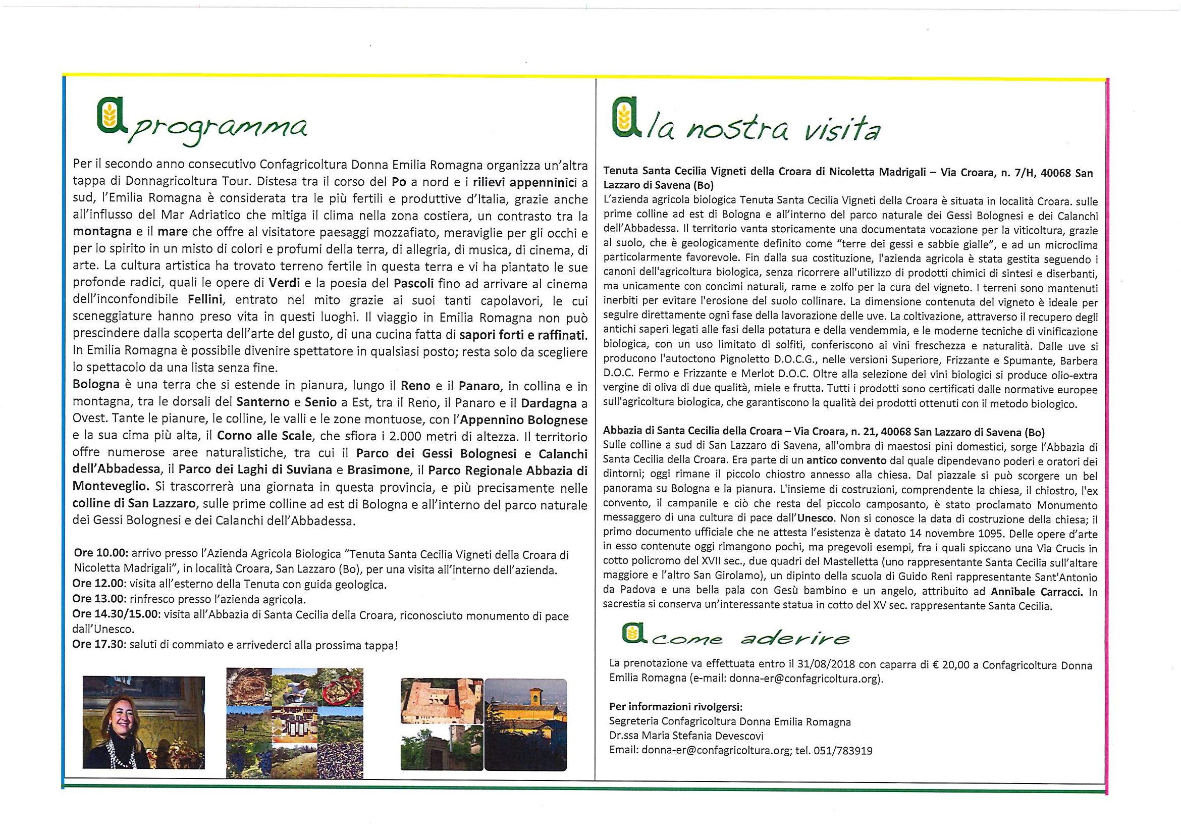 Per il secondo anno consecutivo Confagricoltura Donna Emilia Romagna organizza un’altra tappa di Donnagricoltura Tour, che si svolgerà martedì 18 settembre p.v. in Emilia Romagna.