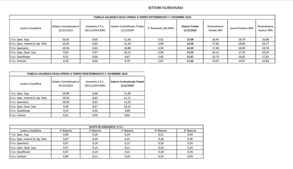 Pubblichiamo, di seguito, le tabelle salariali in vigore dal 1° dicembre 2024.