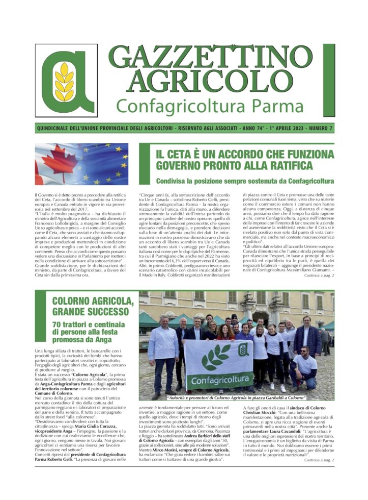 In stampa il quindicinale di informazione di Confagricoltura Parma.
