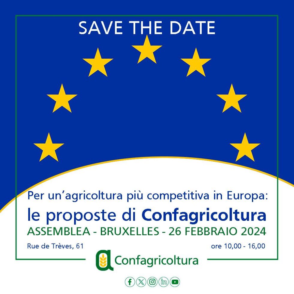 L’assemblea generale di Confagricoltura in programma lunedì 26 febbraio nella sede del Copa Cogeca a