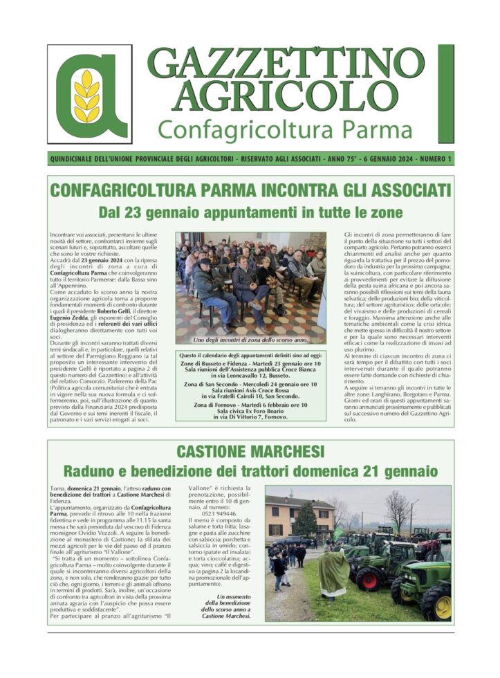 Riprendono, nel nuovo anno, le pubblicazione del Gazzettino Agricolo, il quindicinale di informazione di Confagricoltura