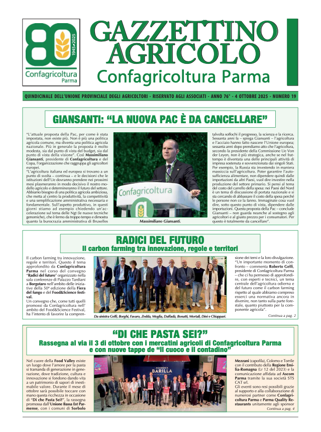 Scarica il Gazzettino Agricolo n. 19 del 2025 di Confagricoltura Parma