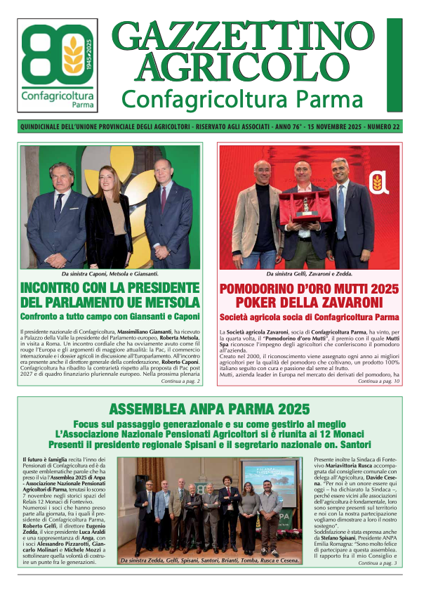 Scarica il Gazzettino Agricolo n. 22 del 2025 di Confagricoltura Parma