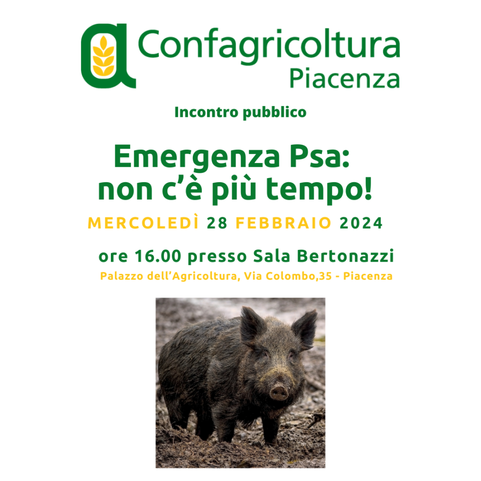 Confagricoltura Piacenza organizza l’incontro “Emergenza Psa: non c’è più tempo”