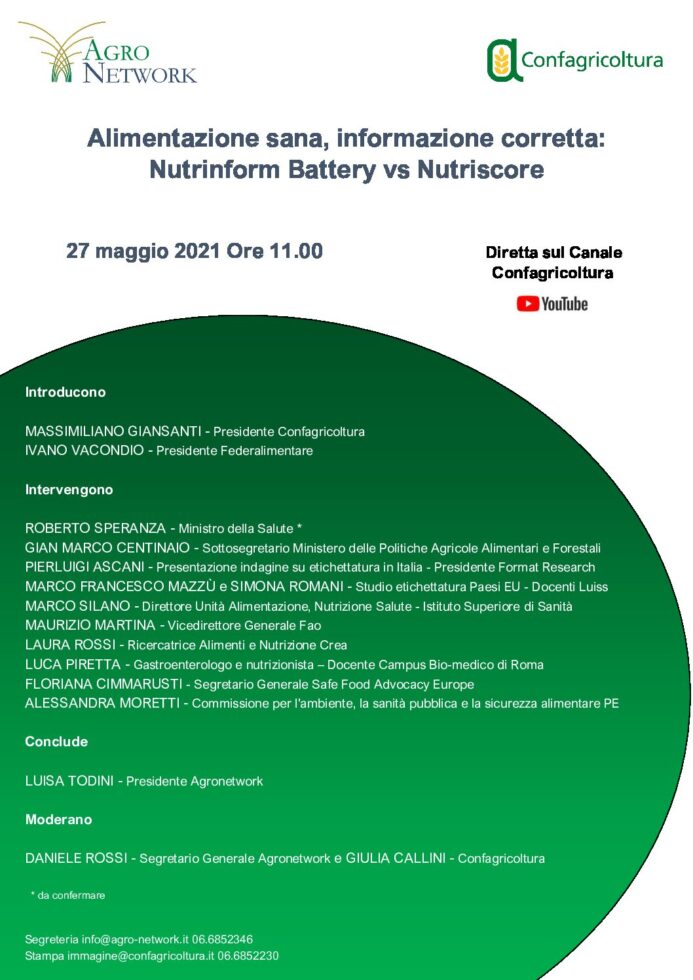 Webinar giovedì 27 alle 11- “Alimentazione sana, informazione corretta: Nutrinform battery vs Nutriscore”