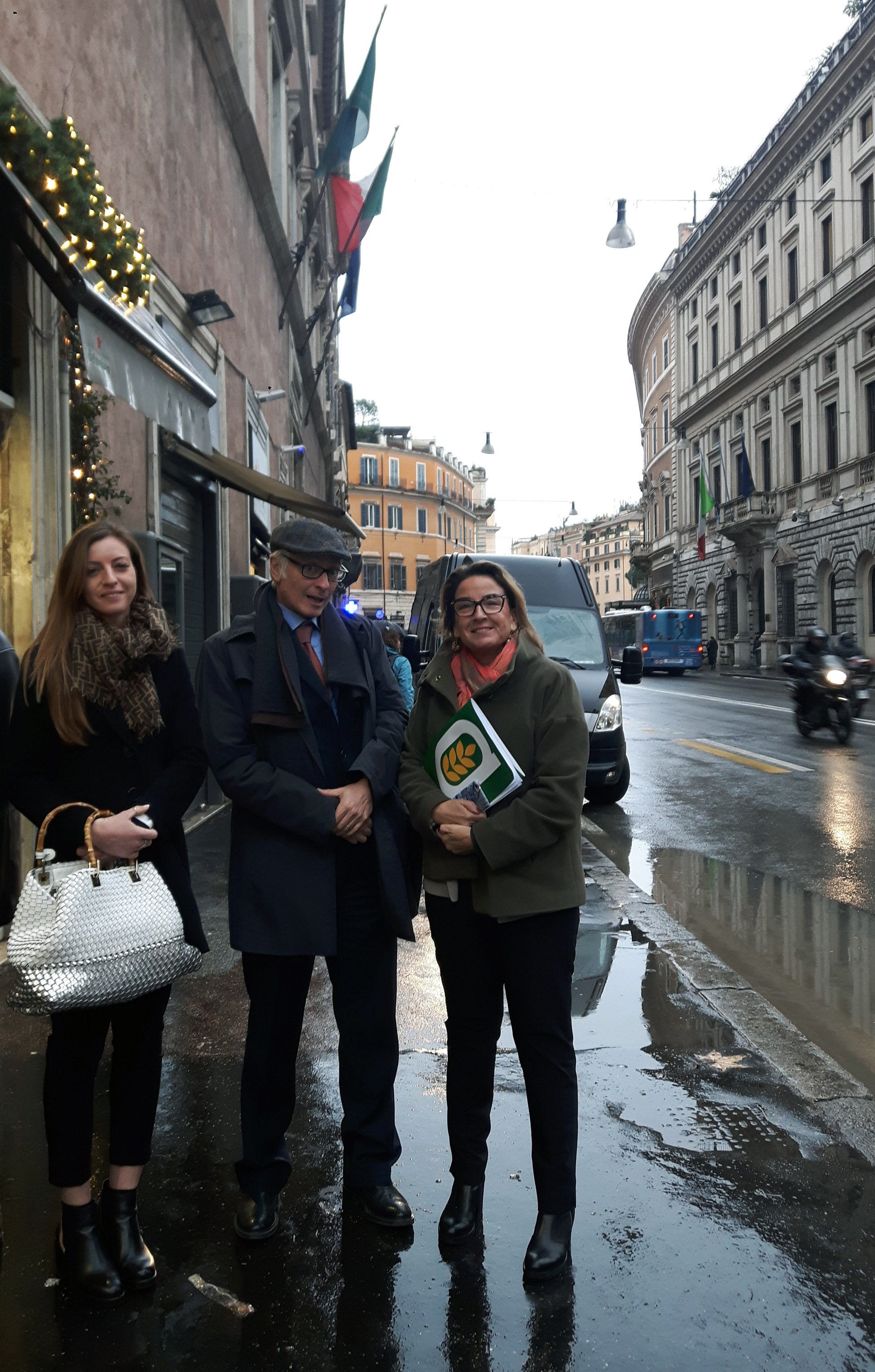 la delegazione piacentina davanti al Palazzo della Valle: Elena Ferrari, Adriano Di Poppa, Giovanna Parmigiani.